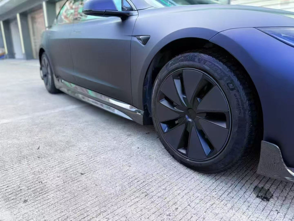 Tesla Model 3 Highland 2024-ON with Aftermarket Parts - V1 Style Carbon Fiber Side Skirts from CMST Tuning