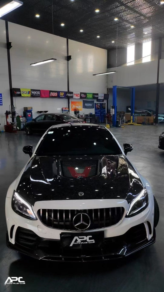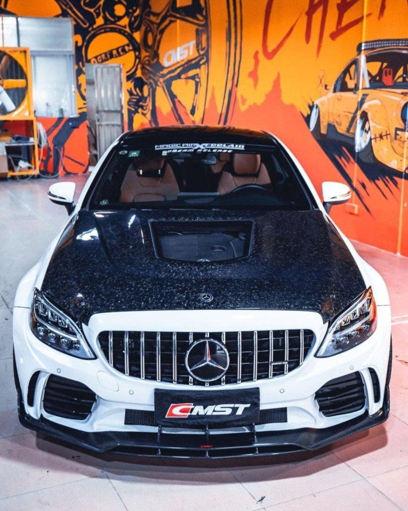 Upgrade Your Mercedes Benz C-Class C43 C400 C300 W205 2015 2016 2017 2018 2019 2020 2021 Sedan & C-Class C43 C300 W205 2015 2016 2017 2018 2019 2020 2021 2022 Coupe Convertible (suitable for both pre-facelift and facelift) with Aftermarket Parts - V2 Clearview Glass Hood Carbon Fiber / FRP from CMST Tuning