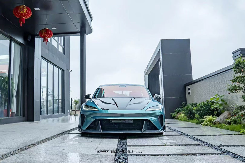 Upgrade Your Tesla Model 3 Highland / Performance 2024-ON with Aftermarket Parts - V1 Style Hood Bonnet Carbon Fiber / FRP from CMST Tuning