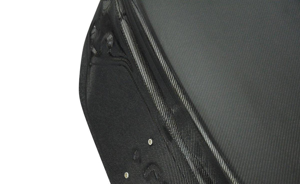 CMST Tuning uses Grade A one-piece carbon fiber sheets with a Fiberglass Reinforced Plastic (FRP) skeleton for strength and durability (except on dry carbon products, since it is not needed). Because CMST Tuning uses one-piece sheets, so you will not see any broken lines or patterns. Rather, all you will notice is just one big consistent weave pattern. In addition to this, all CMST Tuning products use a strong clear coat finish. Clear coats are shiny and durable, and they give you the nice "wet" look as opposed to a duller look from gel coats. Lastly, all of CMST Tuning's carbon sheets are built into the mold, so they do not break and split like the ones where carbon is only wrapped around the skeleton.