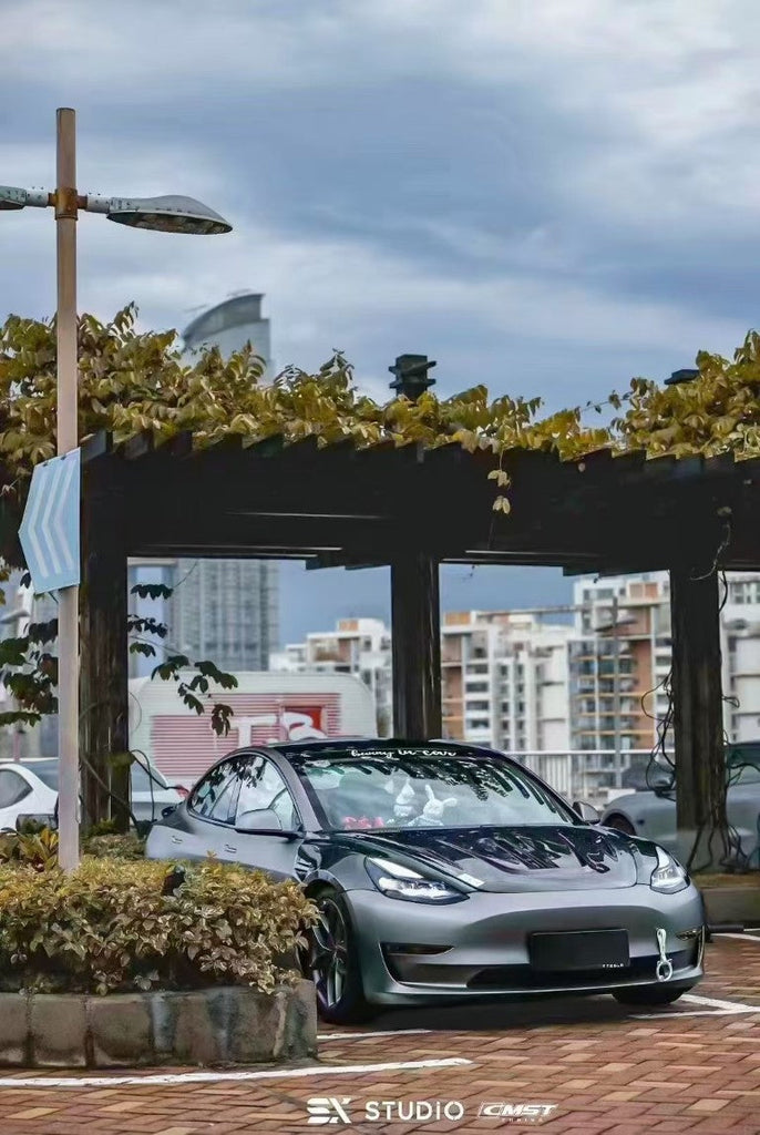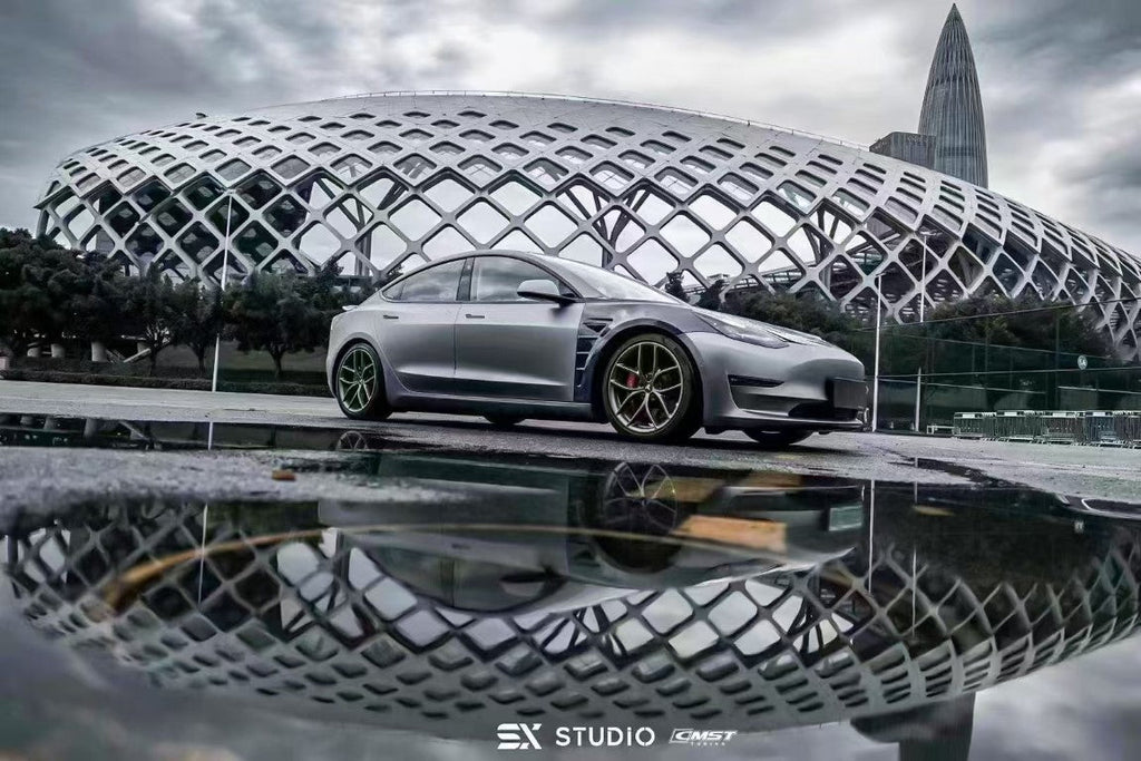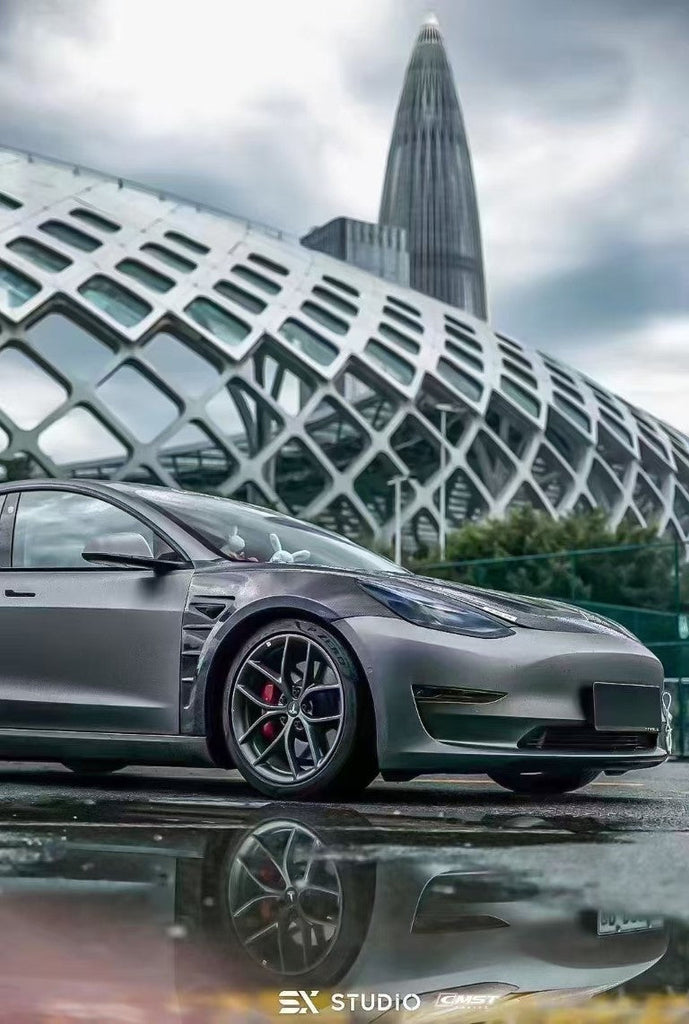 Upgrade Your Tesla Model 3 Performance Long Range Standard Base 2017 2018 2019 2020 2021 2022 2023 with Aftermarket Parts - Front Fenders Carbon Fiber / FRP from CMST Tuning