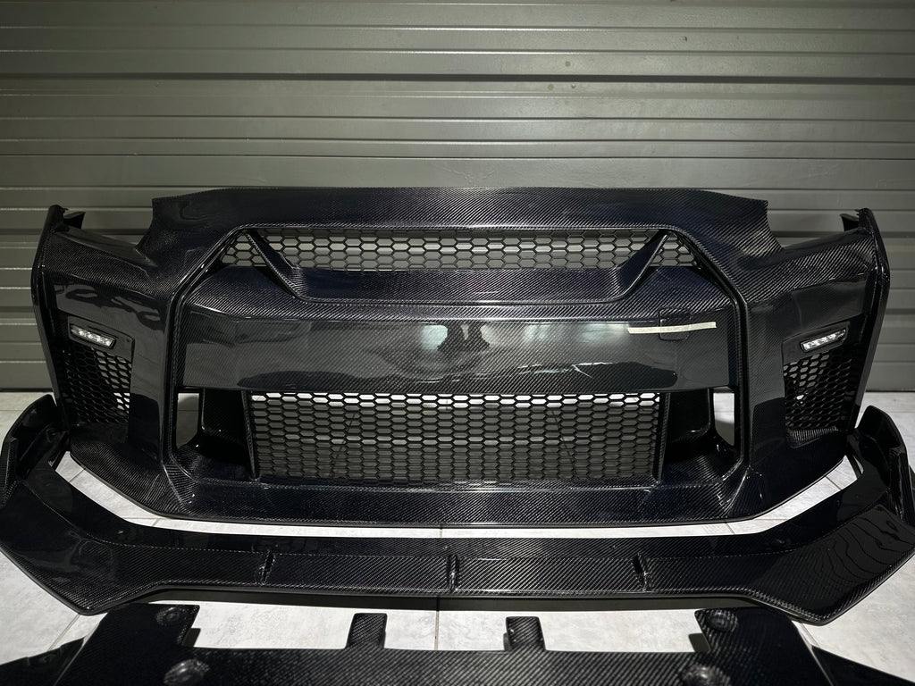Upgrade Your Nissan GTR Nismo Black Edition Track Edition Premium Base 2008 2009 2010 2011 2012 2013 2014 2015 2016 (for installation on 2017 2018 2019 2020 2021 2022 2023 2024 vehicles, 2008 2009 2010 2011 2012 2013 2014 2015 2016 hood is recommended) with Aftermarket Parts - Stage 1 Front Bumper & Lip (Undertray & DRL included) Carbon Fiber / FRP from CMST Tuning