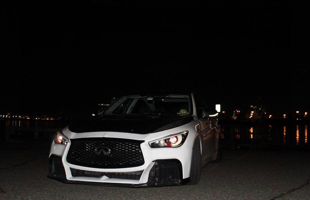 Upgrade Your Infiniti Q50 Red Sport 400 Luxe Sensory Signature Premium Pure 2014 2015 2016 2017 2018 2019 2020 2021 2022 2023 2024 with Aftermarket Parts - Project Black S Concept Front Bumper & Lip Carbon Fiber / FRP from CMST Tuning