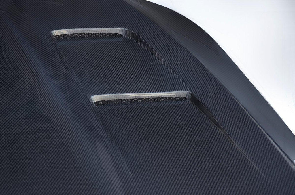 CMST Tuning uses Grade A one-piece carbon fiber sheets with a Fiberglass Reinforced Plastic (FRP) skeleton for strength and durability (except on dry carbon products, since it is not needed). Because CMST Tuning uses one-piece sheets, so you will not see any broken lines or patterns. Rather, all you will notice is just one big consistent weave pattern. In addition to this, all CMST Tuning products use a strong clear coat finish. Clear coats are shiny and durable, and they give you the nice "wet" look as opposed to a duller look from gel coats. Lastly, all of CMST Tuning's carbon sheets are built into the mold, so they do not break and split like the ones where carbon is only wrapped around the skeleton.
