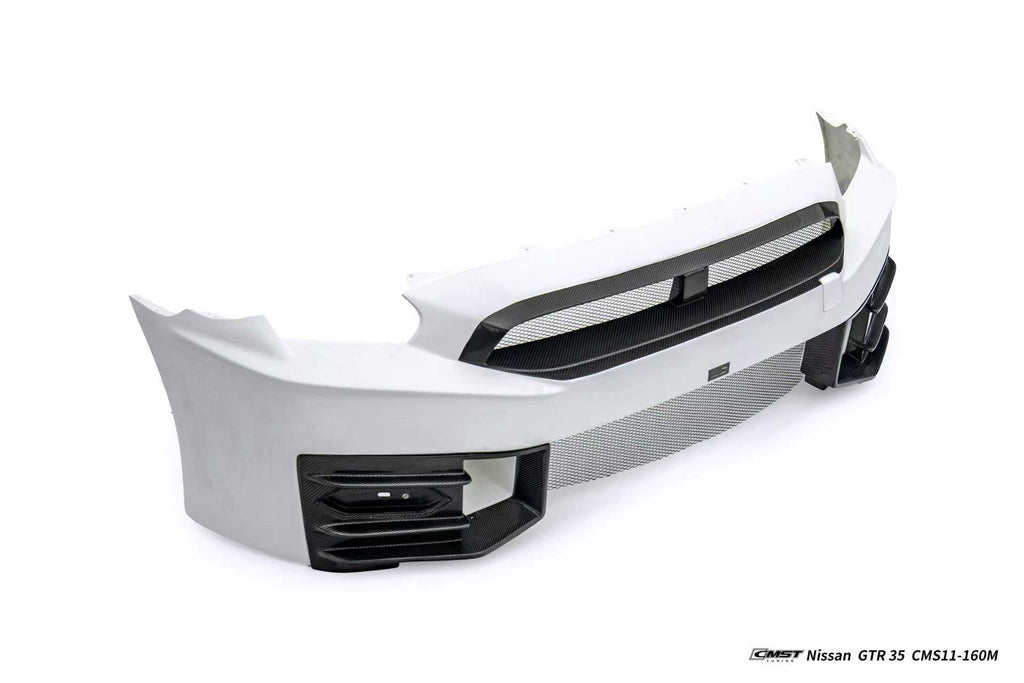 Upgrade Your Nissan GTR R35 CBA DBA EBA 2008 2009 2010 2011 2012 2013 2014 2015 2016 2017 2018 2019 2020 2021 2022 2023 2024 (for installation on 2008-2016 vehicles, 2017-2024 hood is recommended) with Aftermarket Parts - 2024 NISMO Style Front Bumper & Lip & Undertray Carbon Fiber / FRP from CMST Tuning
