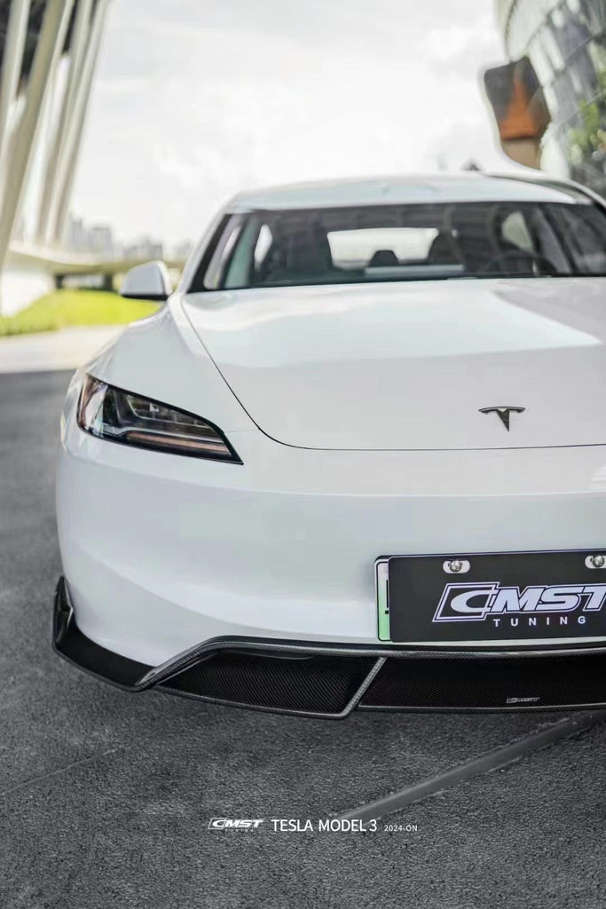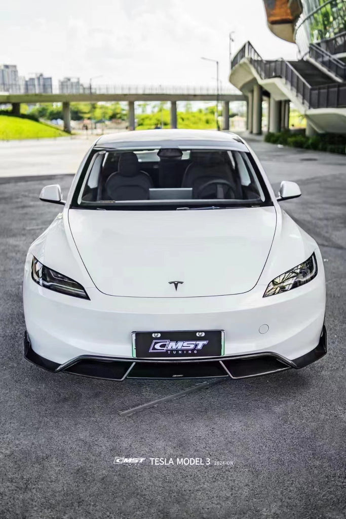 Tesla Model 3 Highland 2024-ON with Aftermarket Parts - V1 Front Lip Carbon Fiber from CMST Tuning
