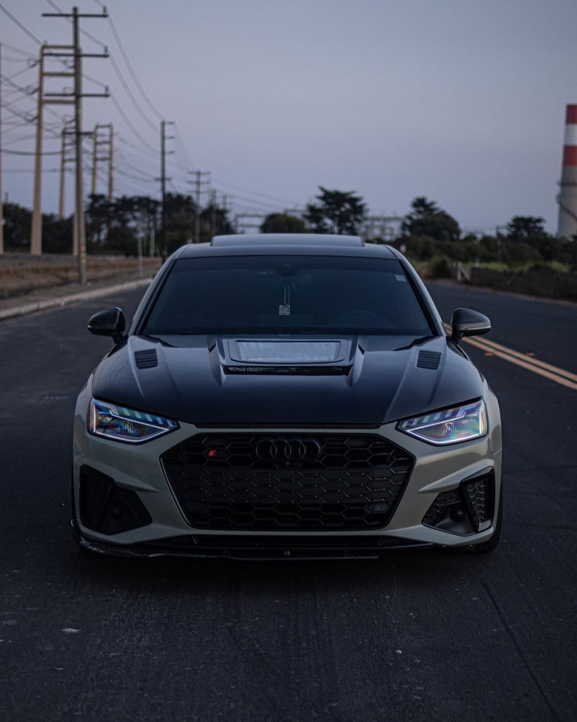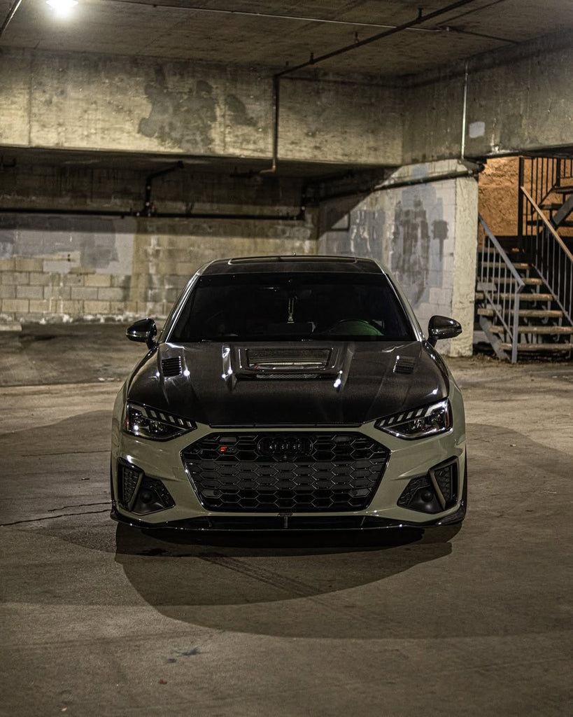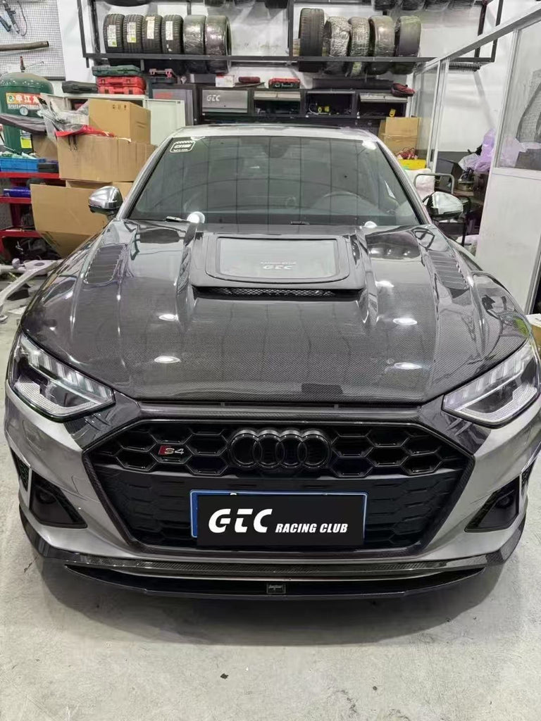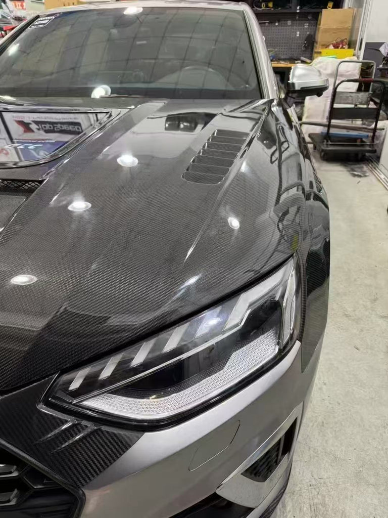 Upgrade Your Audi RS4 2018-ON & S4 / A4 / A4 Allroad / A4 Avant B9 B9.5 2017-ON with Aftermarket Parts - V1 Tempered Glass Transparent Style Hood Bonnet Carbon Fiber / FRP from CMST Tuning
