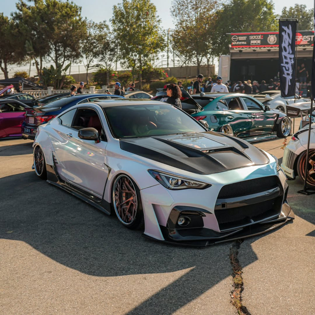 Upgrade Your Infiniti Q60 Red Sport 400 Premium Luxe Sport Pure 2017 2018 2019 2020 2021 2022 with Aftermarket Parts - Tempered Glass Clearview Hood Bonnet Carbon Fiber / FRP from CMST Tuning