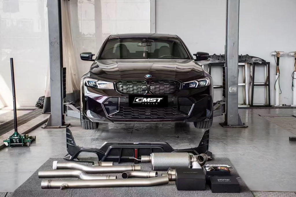 BMW 3 Series 330i M340i G20 G21 LCI 2023-ON (fitment for 330i requires M-Sport package bumper) with Aftermarket Parts - Pre-preg Carbon Fiber & FRP Front Lip from CMST Tuning