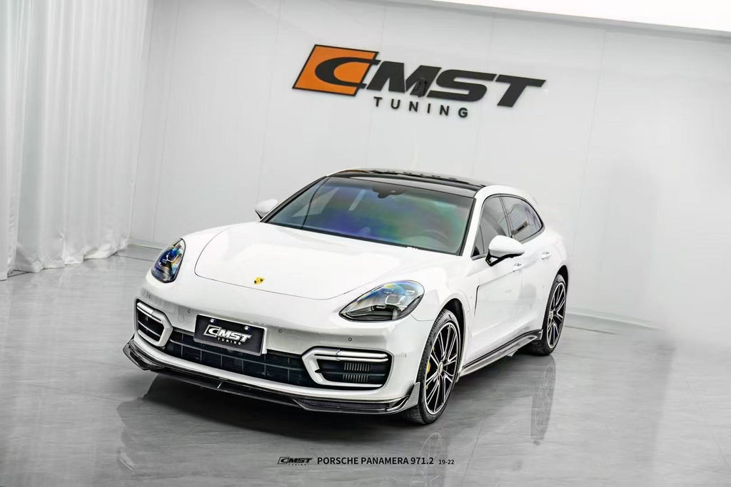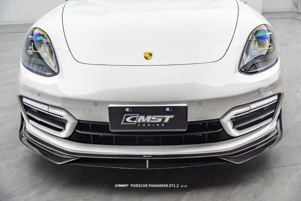 Porsche Panamera 971 971.1 RWD/Base/4/4S/GTS/Turbo/Turbo S 2017 2018 2019 2020 & Panamera 971 971.2 RWD/Base/4/4S/GTS/Turbo/Turbo S 2021 2022 2023 with Aftermarket Parts - Front Lip Splitter Pre-preg Carbon Fiber / FRP from CMST Tuning