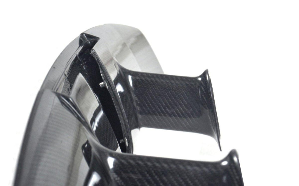 CMST Tuning uses Grade A one-piece carbon fiber sheets with a Fiberglass Reinforced Plastic (FRP) skeleton for strength and durability (except on dry carbon products, since it is not needed). Because CMST Tuning uses one-piece sheets, so you will not see any broken lines or patterns. Rather, all you will notice is just one big consistent weave pattern. In addition to this, all CMST Tuning products use a strong clear coat finish. Clear coats are shiny and durable, and they give you the nice "wet" look as opposed to a duller look from gel coats. Lastly, all of CMST Tuning's carbon sheets are built into the mold, so they do not break and split like the ones where carbon is only wrapped around the skeleton.