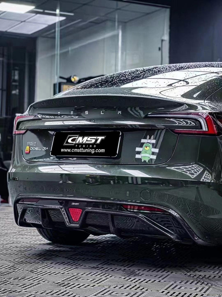 Tesla Model 3 Highland / Performance 2024-ON with Aftermarket Parts - V1 Style Rear Diffuser & Canards Carbon Fiber from CMST Tuning