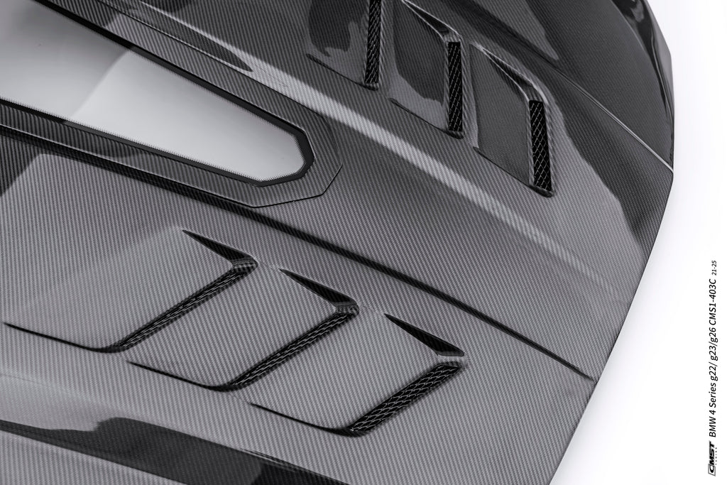 Upgrade Your BMW 4 Series M440 430 G22 G23 2020-ON & 4 Series M440 430 G26 2020-ON with Aftermarket Parts - V2 Tempered Glass Clearview Hood Carbon Fiber / FRP from CMST Tuning