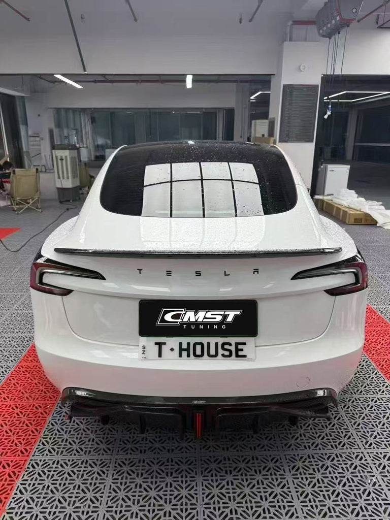 Tesla Model 3 Highland / Performance 2024-ON with Aftermarket Parts - V3 Style Rear Spoiler Carbon Fiber from  CMST Tuning