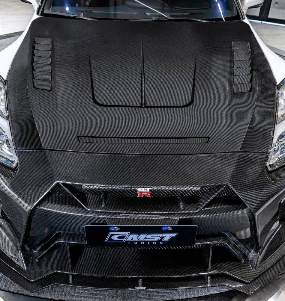 Upgrade Your Nissan GTR R35 CBA DBA EBA 2008 2009 2010 2011 2012 2013 2014 2015 2016 2017 2018 2019 2020 2021 2022 2023 2024 (for installation on 2017-2024 vehicles, 2008-2016 bumper is recommended) with Aftermarket Parts - V6 Hood Carbon Fiber / FRP from CMST Tuning