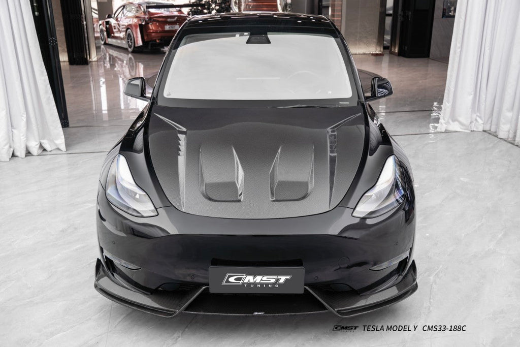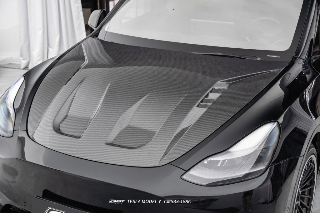 Upgrade Your Tesla Model Y Performance AWD Long Range RWD Standard 2020 2021 2022 2023 2024 2025 with Aftermarket Parts - V7 Style Hood Carbon Fiber / FRP from CMST Tuning
