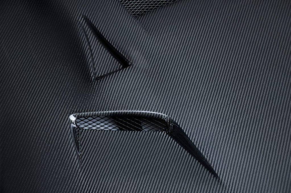 CMST Tuning uses Grade A one-piece carbon fiber sheets with a Fiberglass Reinforced Plastic (FRP) skeleton for strength and durability (except on dry carbon products, since it is not needed). Because CMST Tuning uses one-piece sheets, so you will not see any broken lines or patterns. Rather, all you will notice is just one big consistent weave pattern. In addition to this, all CMST Tuning products use a strong clear coat finish. Clear coats are shiny and durable, and they give you the nice "wet" look as opposed to a duller look from gel coats. Lastly, all of CMST Tuning's carbon sheets are built into the mold, so they do not break and split like the ones where carbon is only wrapped around the skeleton.