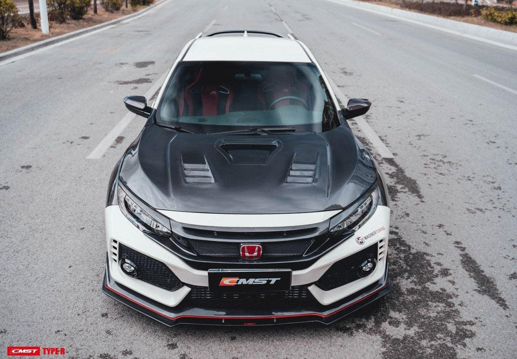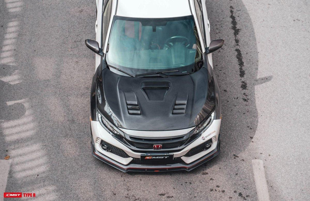Upgrade Your Honda Civic Type-R FK8 2017 2018 2019 2020 2021 with Aftermarket Parts - V2 Vented Hood Bonnet Carbon Fiber / FRP from CMST Tuning